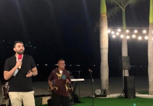 Hamza presenting the photo competition’s prizes at the final conference dinner.